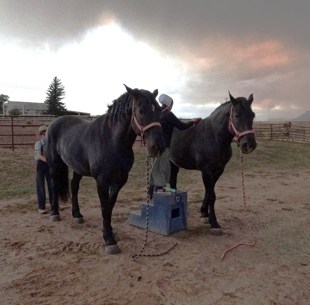 | HIP# 157 Bay Draft Cross Gelding ![]() "Maverick" 3 yr. old Bay Draft Cross Gelding broke to ride and drive. 100% sound. Consigned by: John Yoder Agent: Enos Yutzy (719) 588-7523 ... | HIP# 158 & 159 Team of Black Percheron Geldings ![]() ![]() "Waylon & Willie" 4 yr. old Black Percheron Geldings. ... | HIP# 160 Grey Percheron X Gypsy Gelding ![]() ![]() "Triton" 6 yr. old Grey Percheron X Gypsy Gelding. He has alot of go, great in the mountains and working on the ranch. He will go all day. Consigned by Thayne Stembridge (435) 640-4397 ... |