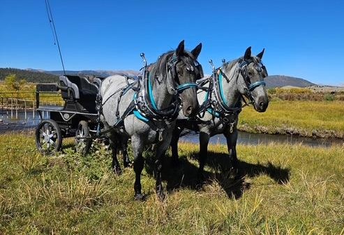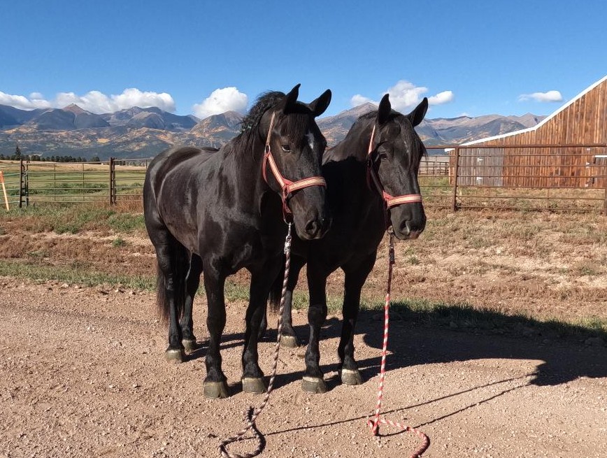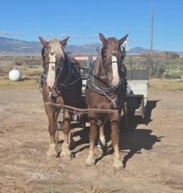 | HIP# 161 & 162 Team of Black Percheron Geldings ![]() "Sam & Don" - 20 yr. old Black Percheron Geldings with years of experience. They’ve done it all; parades, 25-passenger sleigh rides, feeding teams, Christmas caroling in downtown Steamboat Springs t ... | SCRATCH![]() | HIP# 164 & 165 Reg. Bay Brabant X Quarter Horse Mare & Gelding ![]() ![]() "Raya & Corona" 4 & 5 yr. old Registered Bay Brabant X Quarter Horse Mare & Gelding. ... |