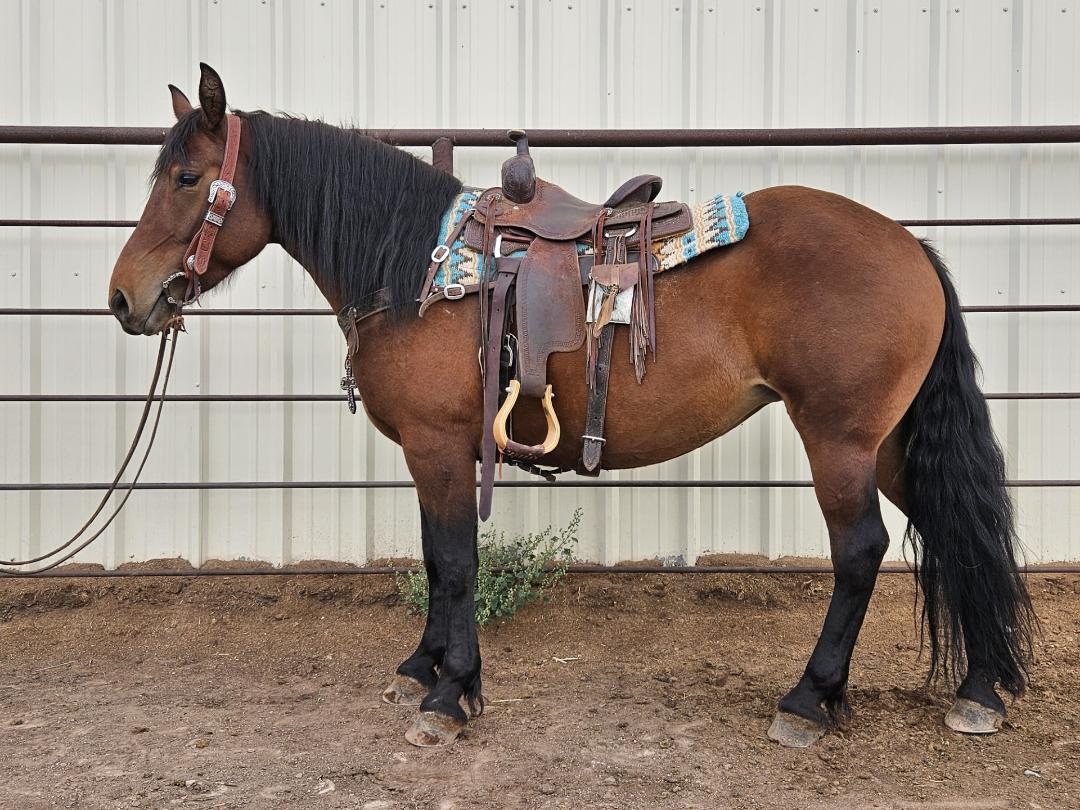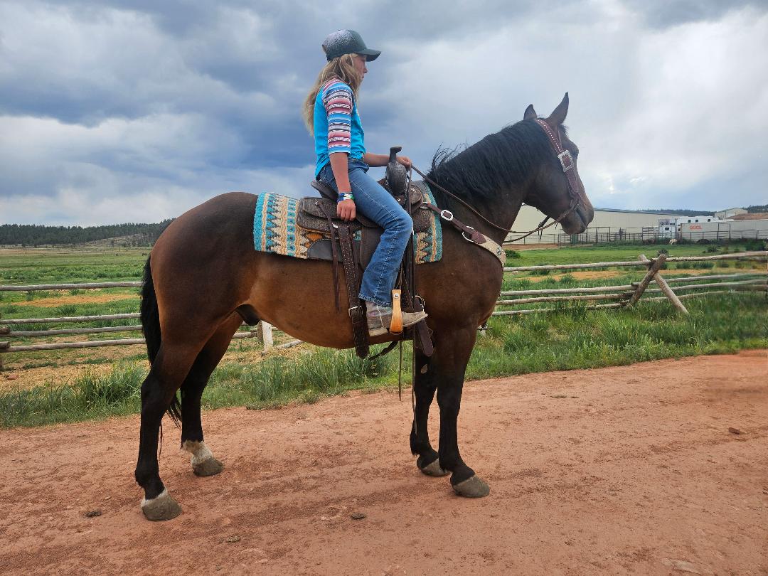 | HIP# 10 Dun Quarter Horse Gelding ![]() "Marv" 8 yr. old Dun Quarter Horse Gelding. Marv is a gelding that stands 14.2 hands tall. Super gentle and easy-going all-around horse. Has seen tons of ranch and trail miles. Rides out alone or in a ... | HIP# 11 Black AQHA Gelding ![]() HIGH BROW TIME C19 - 6 yr. old Black AQHA Gelding. He is a gentle easy ride, muscular with a big hip, that stands 15 hands. Has a good stop, works off your feet well. Decent side pass. Rides with a li ... | SCRATCH![]() ![]() |