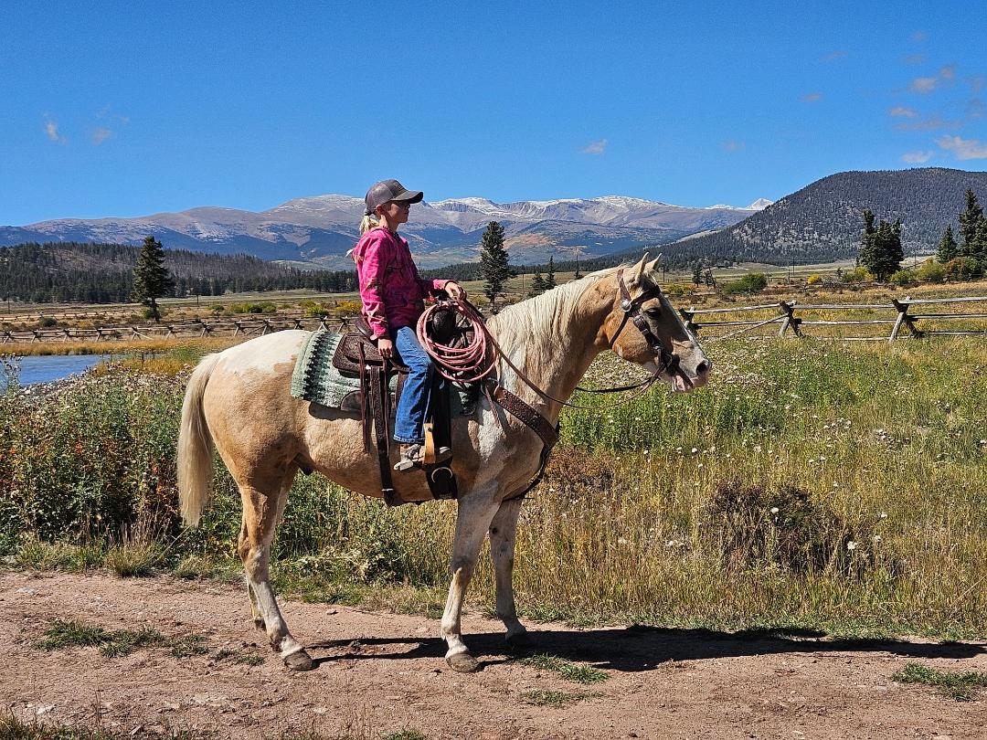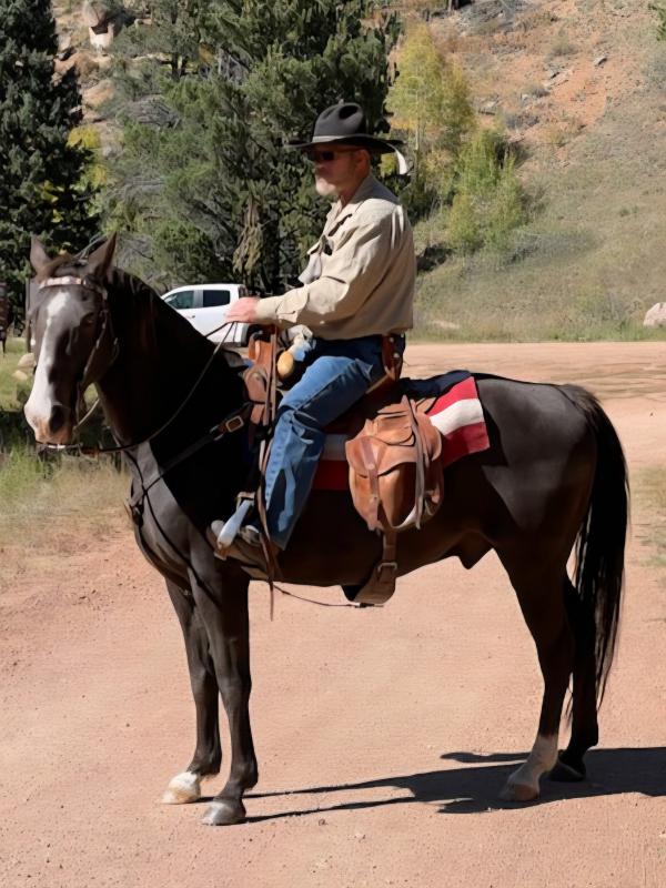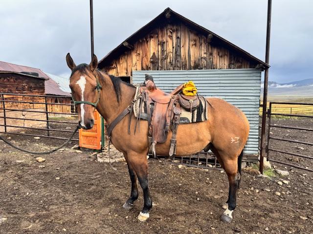 | HIP# 4 Sorrel Quarter Horse Gelding ![]() "Stretch" - 18 yr. old Sorrel Quarter Horse Gelding. He is a solid mountain trail/ranch horse. He was used to doctor cattle, been on a sheep camp, and a good safe horse for clients to ride into high m ... | HIP# 5 Buckskin AQHA Gelding ![]() MISTER POCO REY BAR - 12 yr. old Buckskin AQHA Gelding. He is a great horse! Loves people, a beautiful ride, can rope off him, sort cattle, trailers great, shoes, baths, just about anything! Gentle bu ... | HIP# 6 Blue Roan Quarter Horse ![]() ![]() "Kane" 6 yr. old Blue Roan Quarter Horse Gelding. He stands 14.3 hands. Kane is a great all- around gelding. He rides great in the arena and outside. He’s been on many trail rides and has seen a lot ... |