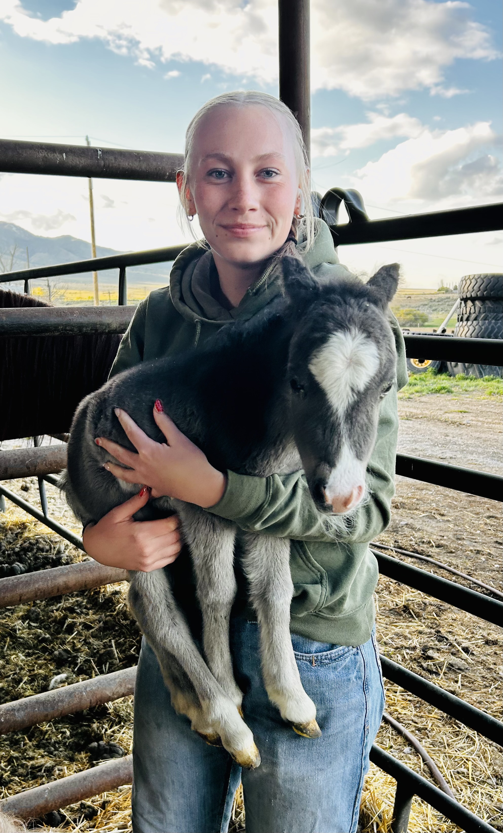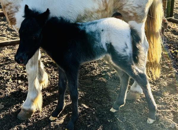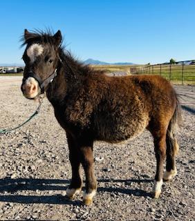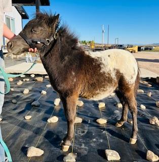 | HIP# 186 Black Miniature Stud ![]() ![]() "Dawson" Weanling Black Miniature Stud Colt. He is very quiet and nice to be around. He is an absolute pet! Dawson lays down and super gentle! Consigned by: Enos Yutzy (719) 588-7523 ... | HIP# 187 Blue Roan Miniature Stud Colt ![]() ![]() "Swiss" - Weanling Blue Roan Miniature Stud Colt. Currently 28" tall. Dam is 33" tall Sire is 29" tall. Color testing is Homozygous Black and 1 copy or roan (E/E Rn/N). Hard to find color and extreme ... | HIP# 188 Weanling Grey & White Paint Miniature Stud ![]() "Wrangler" Weanling Grey & White Paint Miniature Stud. Wrangler is a handsome little feller. He is so sweet and loves to be in your pocket. His mother is May from the team earlier. He is so smart and ... |