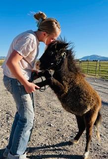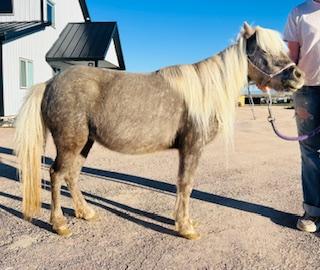 | HIP# 189 Black Weanling Stud ![]() ![]() "Boone" Weanling Black Miniature Stud. Boone is the sweetest little guy. He loves all the attention and trying new things. Really smart and loves being handled. Consigned by: Jared Parker (435) ... | HIP# 190 Bay Roan Miniature Filly ![]() ![]() "Biscuit" - Weanling Bay Roan Miniature Filly. Currently 27" tall. Dam is 33" Buckskin, Sire is 29" Homozygous Blue Roan. She knows some tricks and loves kids. Sound and correct in every way. Bred an ... | HIP# 191 Sorrel Pony Mare ![]() "Breezy" 20 yr. old Sorrel Pony Mare, broke to ride. An older, bigger pony with plenty of go. Breezy loves to step out at a quick pace and keep the ride moving. She’s steady, forward, and perfect fo ... |