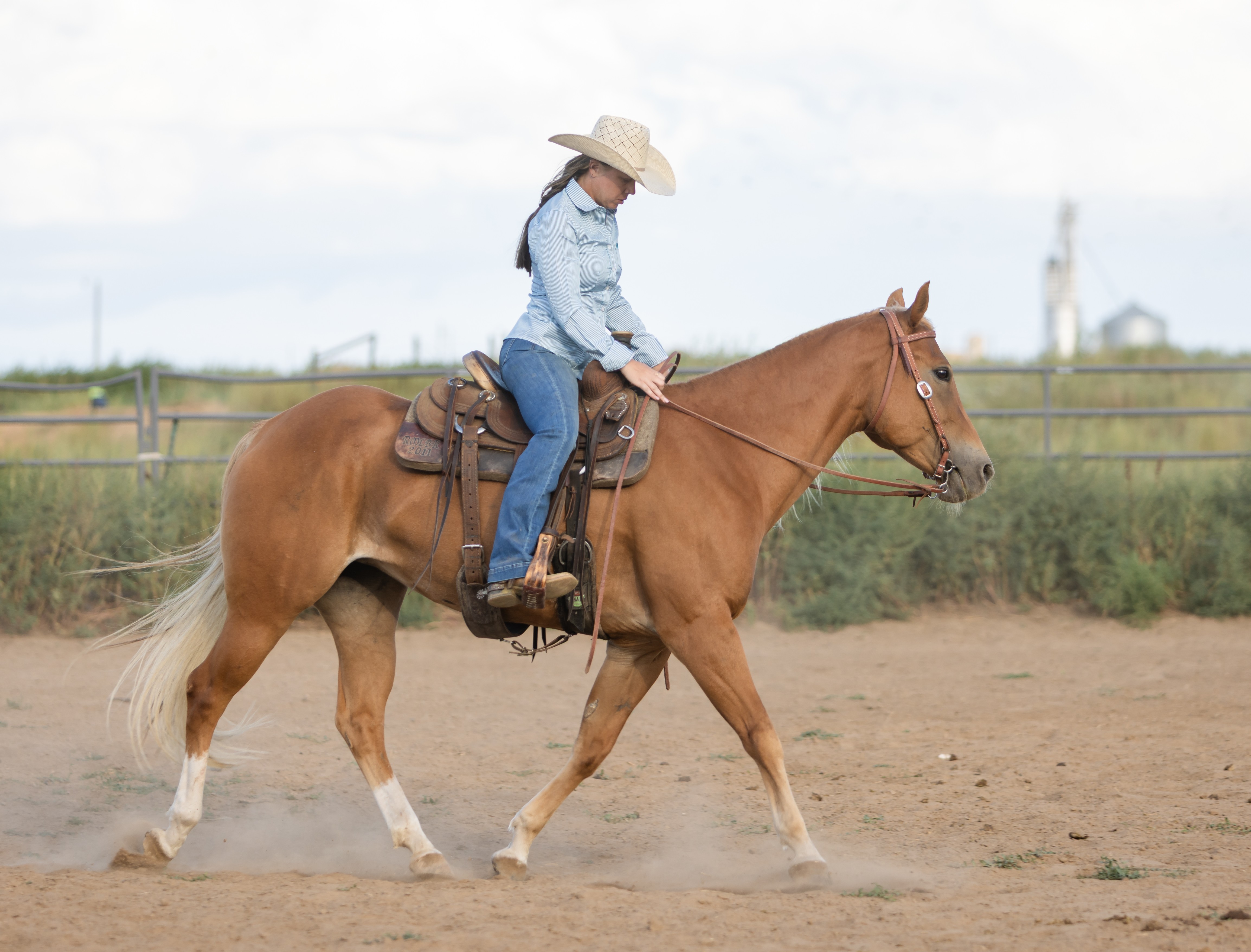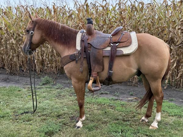 | HIP# 43 Buckskin Quarter Horse Gelding ![]() "Bucky" - 9 yr. old Buckskin Quarter Horse Gelding that has seen and done everything on the ranch. Ropes outside, drug calves, sorted allies, you name it he’s done it. Has been roped out of both the ... | HIP# 44 Sorrel Quarter Horse Cross Gelding ![]() "Tequila" 10 yr. old Sorrel Quarter Horse Cross Gelding. He's been used to rope, sort and trail ride. Tequila has been used at a feedlot and in the arena. He is gentle & will meet you at the gate! ... | HIP# 45 Sorrel Quarter Horse Mare ![]() ![]() "Honey" 9 yr. old Sorrel Quarter Horse Mare. Honey is a beautiful 9-year-old grade mare standing 15.2 hands. She was originally started as a young horse in the feedlot, then given time off before bein ... |