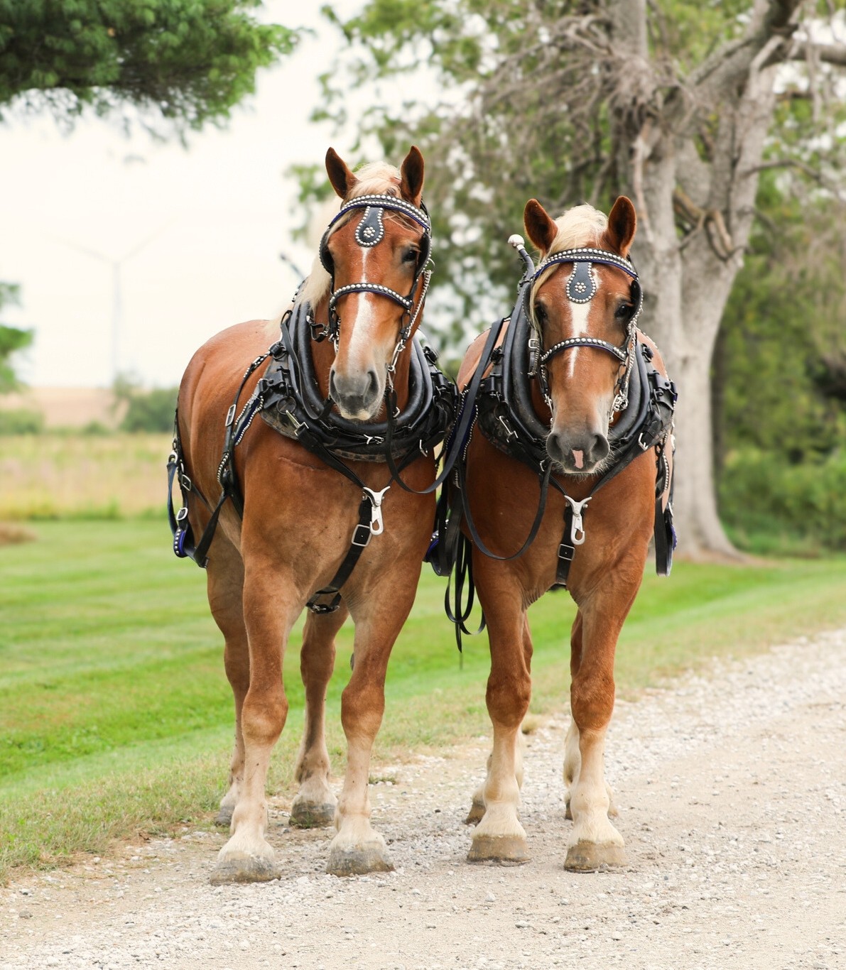 | HIP# 128 & 129 Team of Registered Blue Roan Brabant X Percheron Mares ![]() ![]() "Trinity & Sky" - 4 yr. old Registered (European Brabant Association) Blue Roan Brabant X Percheron Mares. Both are 16.2 HH & half-sisters (same sire)! All black points and they are going to be THICK. ... | HIP# 130 Grey Percheron Cross Gelding ![]() "Colby" 12 yr. old Grey Percheron Cross Gelding, broke to ride and very gentle! He stands 15.2hhs with a of shape, and bone to him. We have done a little bit of everything with him Colby. He has been ... | HIP# 131 & 132 Team of Blonde Haflinger Mares ![]() ![]() "Milly & Dolly" 16 & 17 yr. old Blonde Halflinger Mares. These little mares have done it all. They have been used as a feed team with a bob sled and wagons. They are parade safe and have been used in ... |