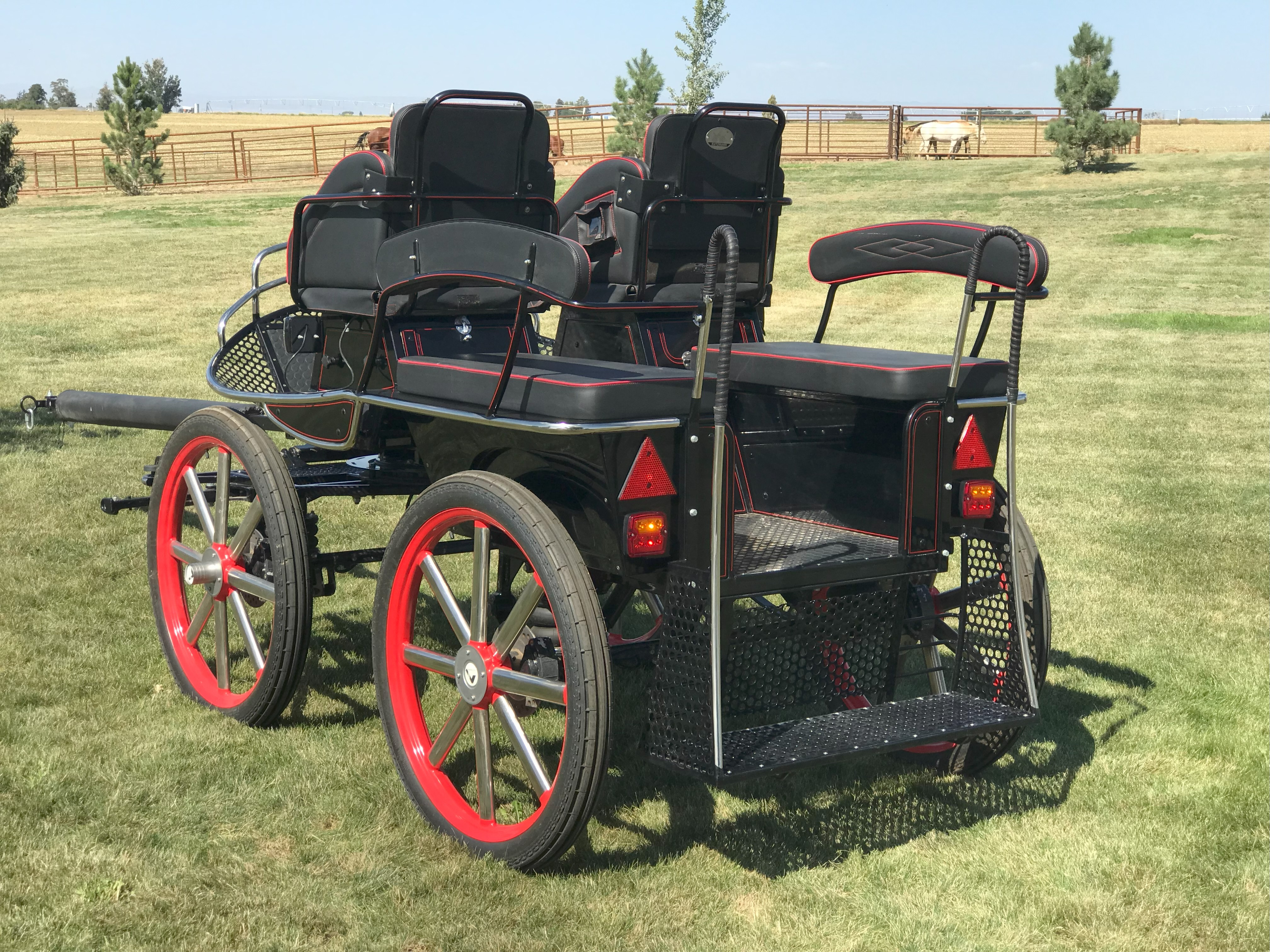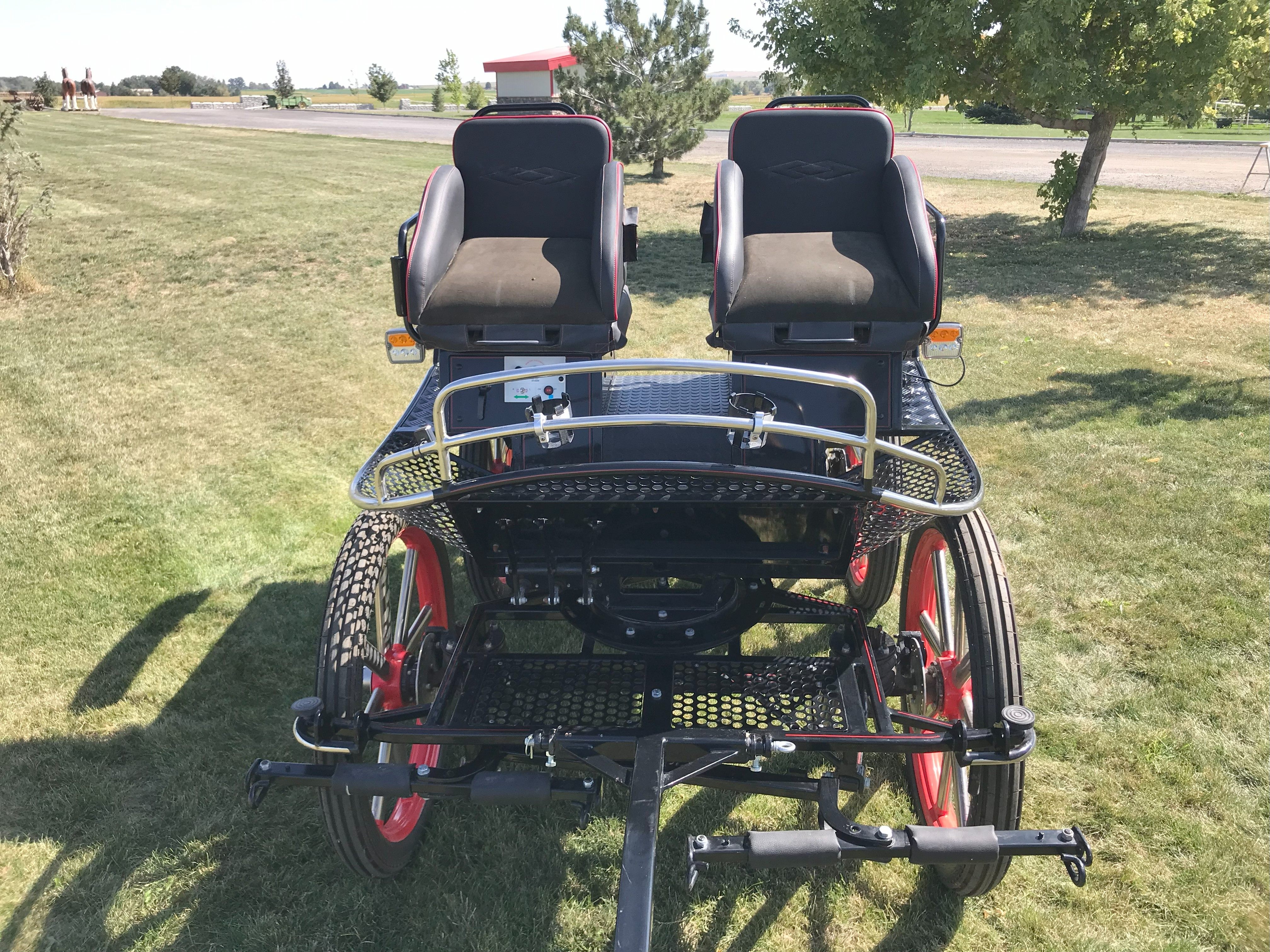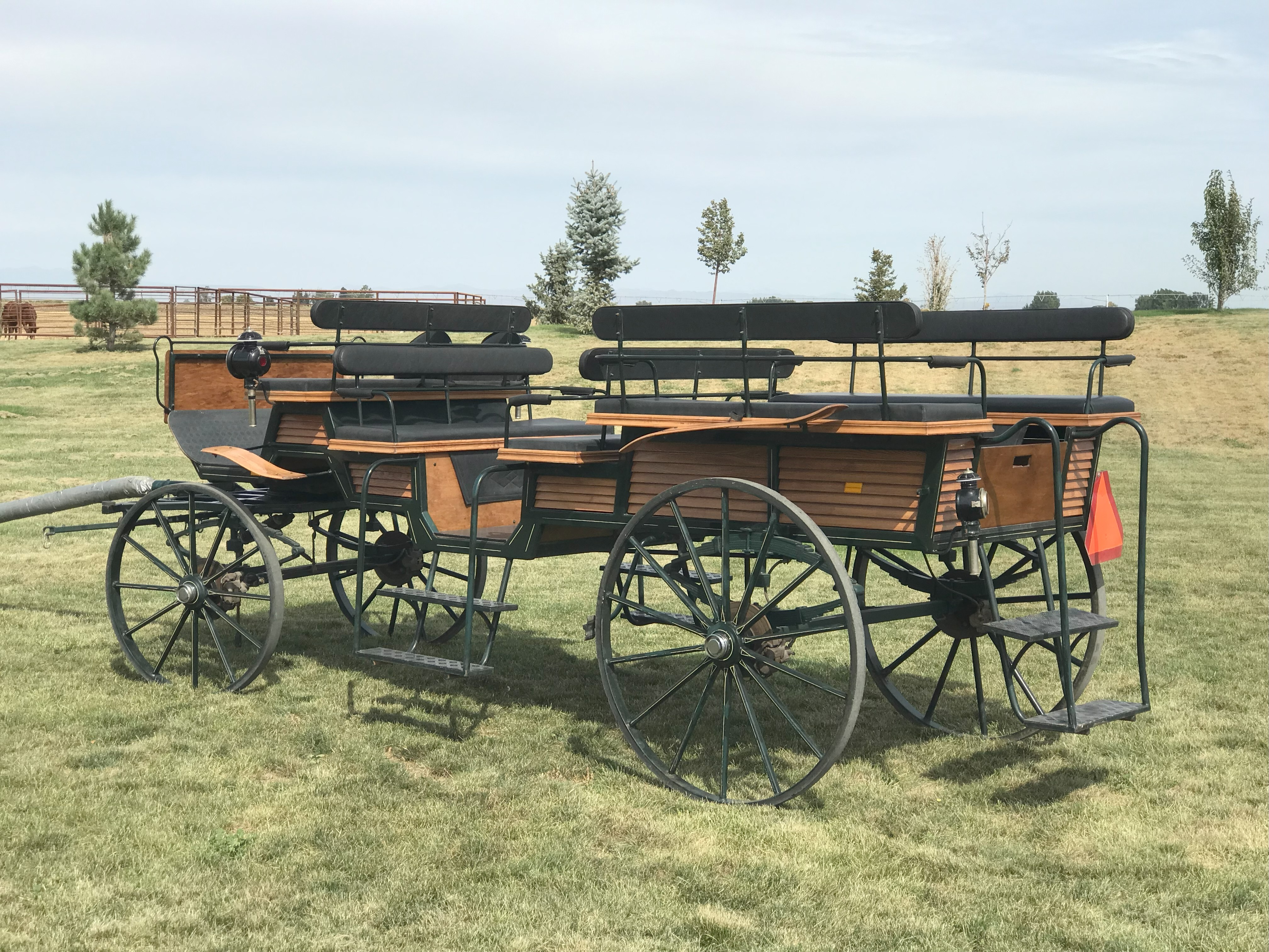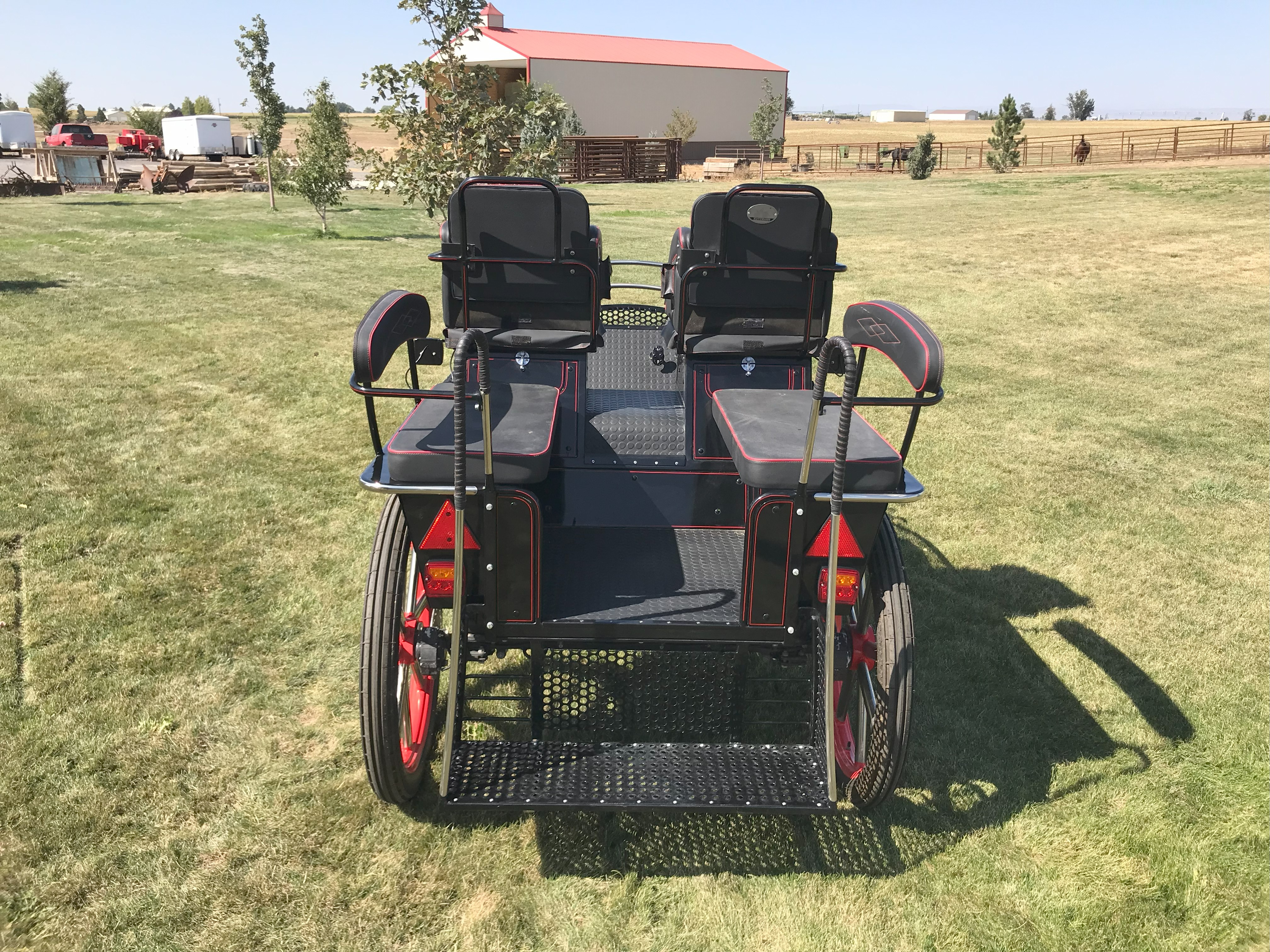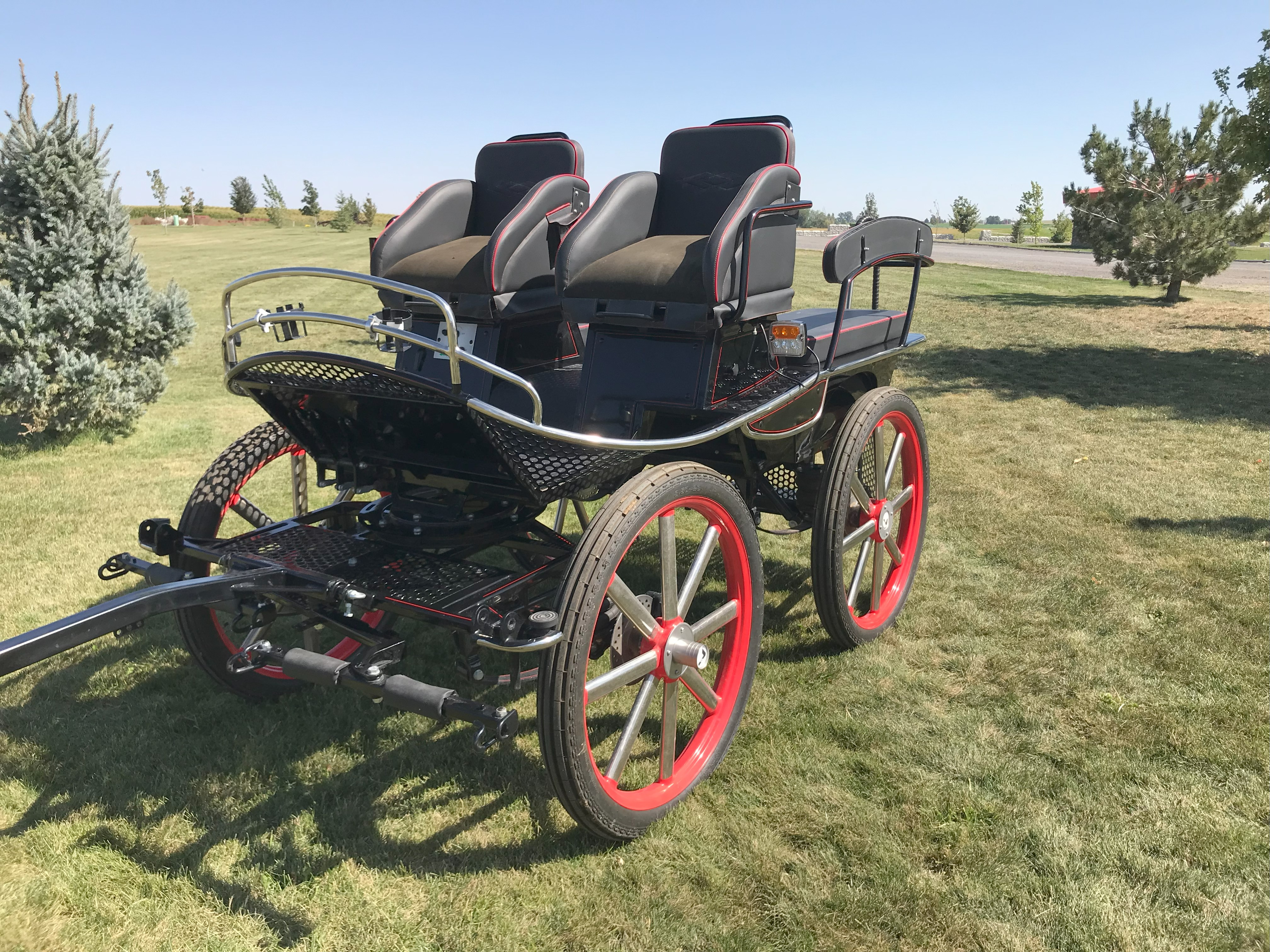 Kutzmann Defender Draft 6 Passenger Wagonette![]() Lightly used and in excellent condition. Manufactured in 2020, the D6 Wagonette is a classic carriage that combines traditional design with modern features. It is well-suited for family or tourist rid ... | Polish Open-Air Picnic Wagon![]() This Polish-built open-air Picnic Wagon is a traditional carriage designed for group outings and leisure drives. It features classic styling with practical modern touches. Storage compartments are loc ... | Roberts Carriage Classic Vis-A-Vis Sleigh on Wheels ![]() This Classic Vis-A-Vis Sleigh by Roberts Carriages combines traditional sleigh styling with the practicality of wheels, allowing for year-round use. Its curved body and roller-bearing fifth wheel prov ... |