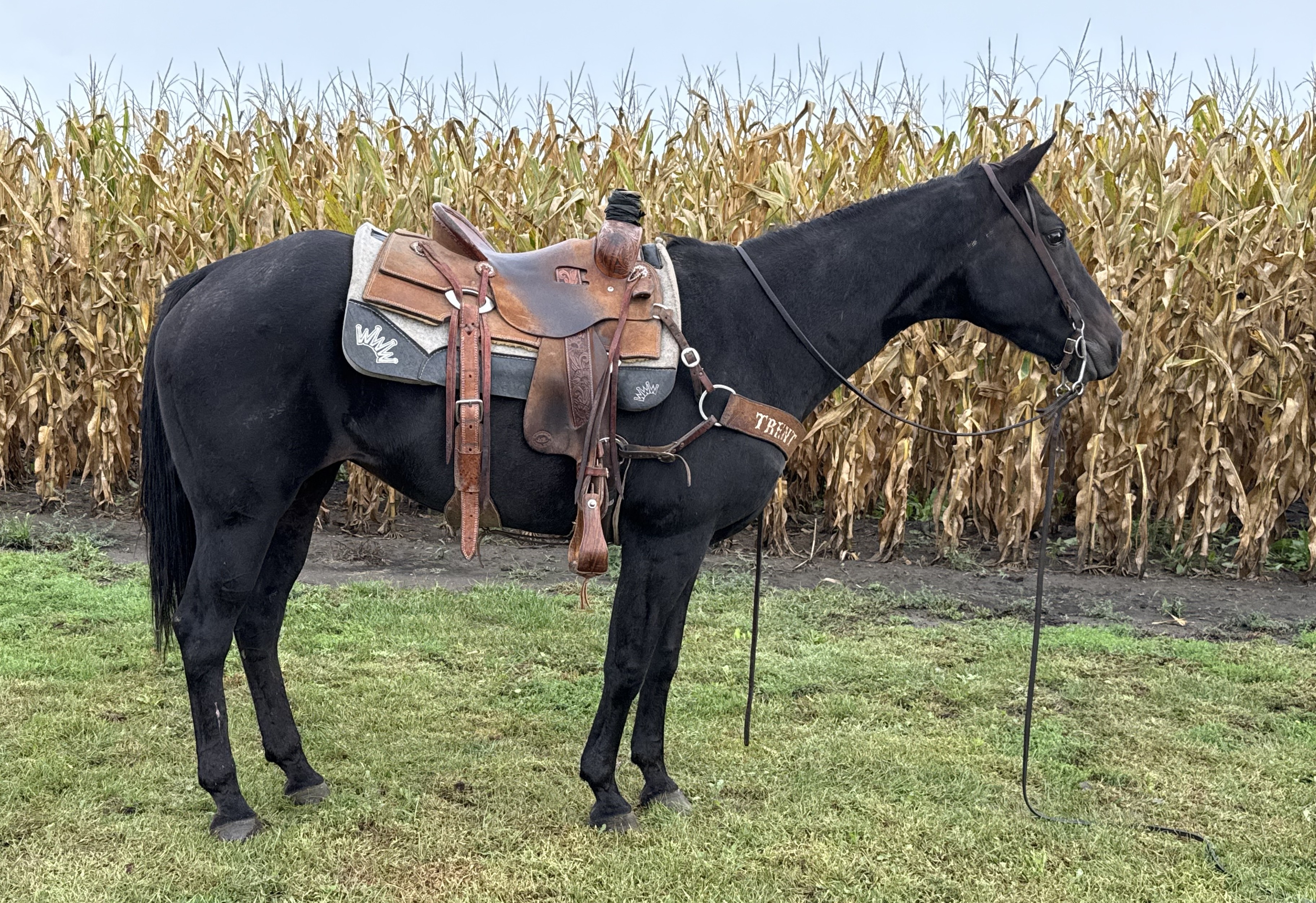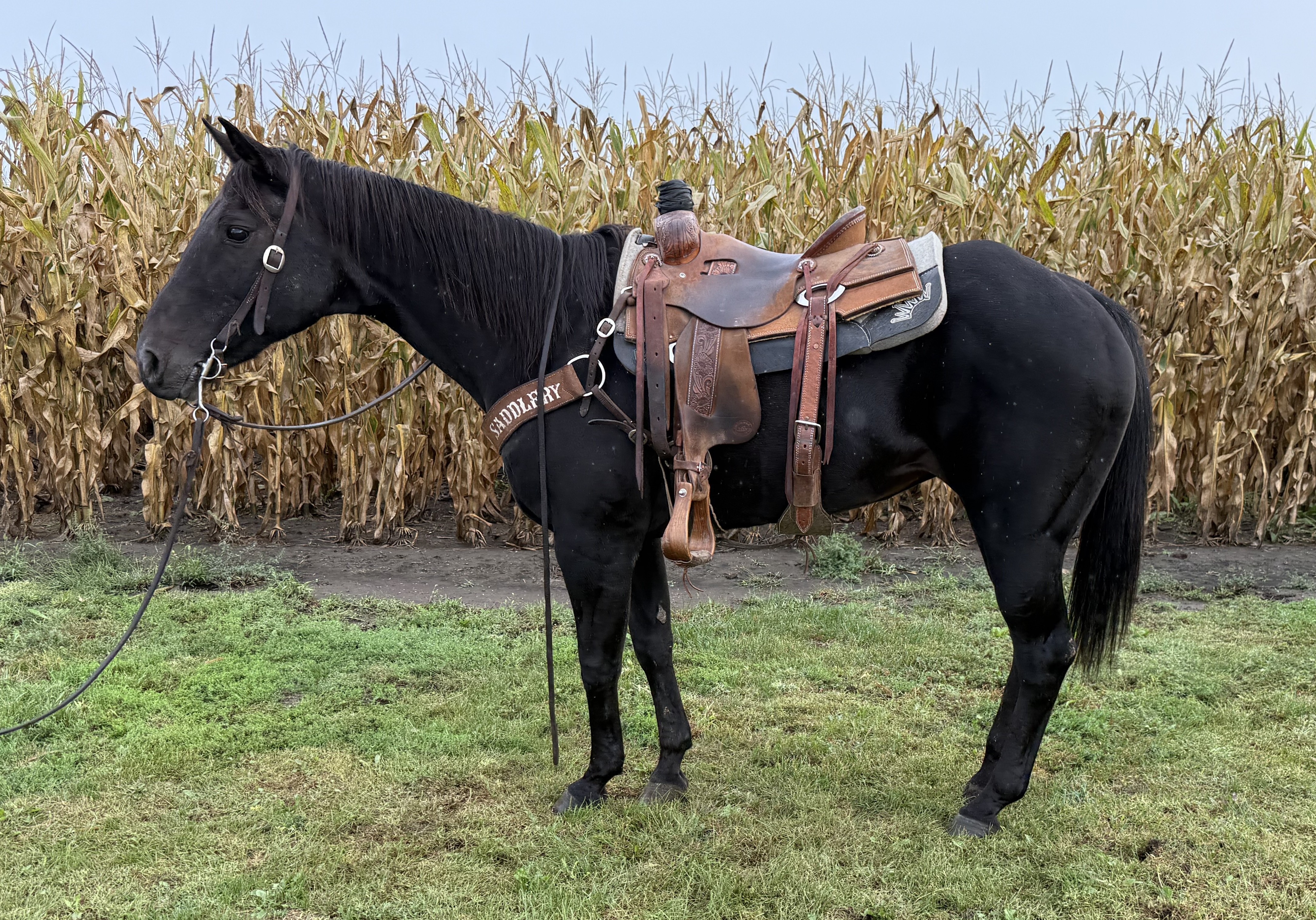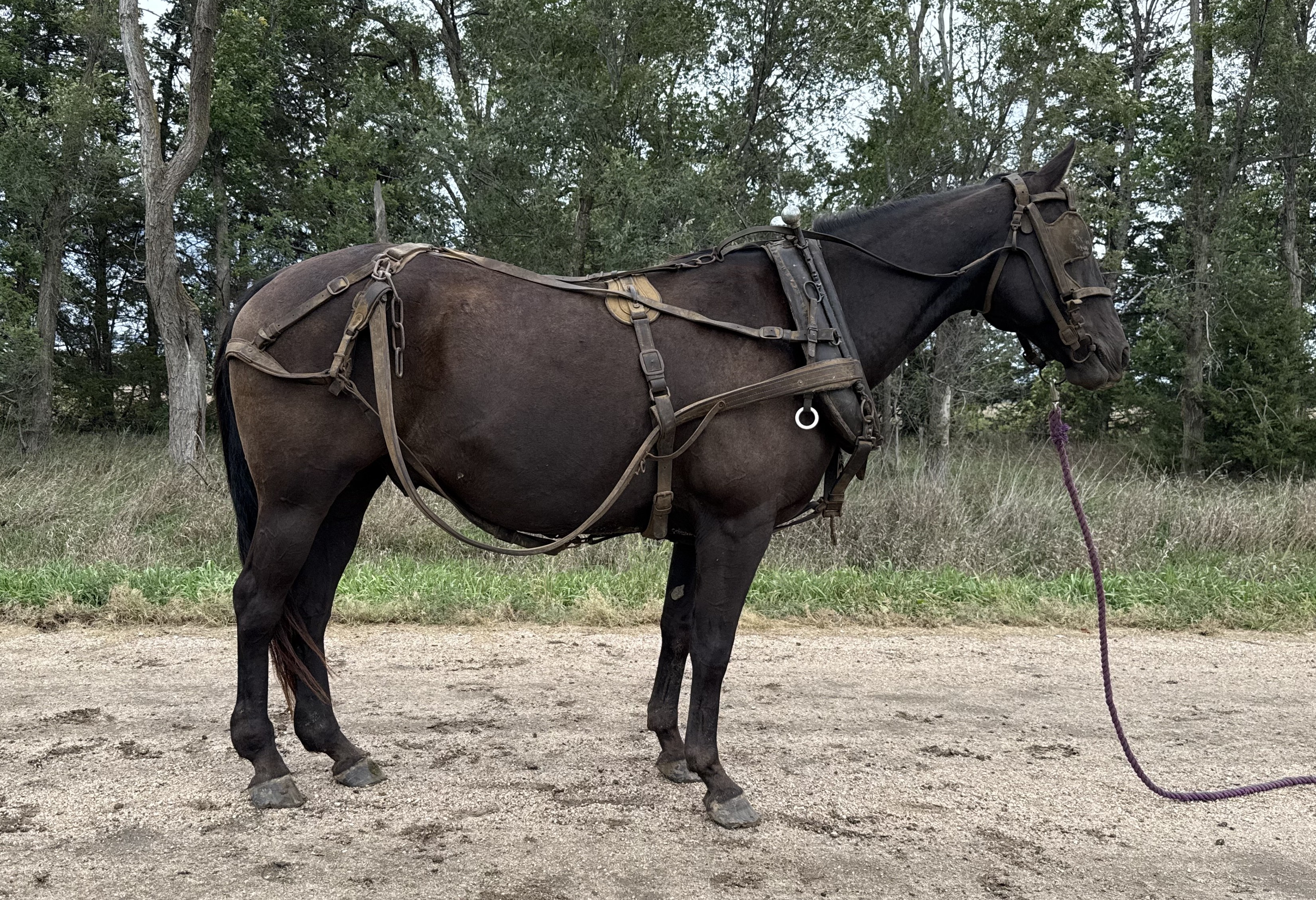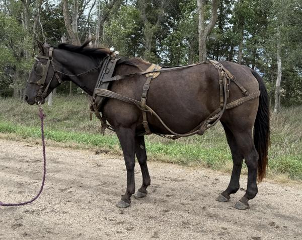| HIP# 124 Seal Brown Friesian X Percheron Filly ![]() "Nirvana" - Weanling Seal Brown 1/4 Friesian X 3/4 Percheron Filly. She was born June 6, 2025. Beautiful, eye catching filly! Would make a great riding or driving horse. Microchipped, wormed, vaccinat ... | HIP# 125 Black Friesian X Percheron Filly ![]() "Nicolette" - Weanling Black 1/4 Friesian X 3/4 Percheron Filly. She was born on May 13, 2025. Fancy, sharp filly! Would make a great riding or driving horse. Microchipped, wormed, vaccinated for flu, ... | HIP# 126 & 127 Team of Black Percheron Geldings ![]() ![]() "Ben & Dan" - Team of 5 yr. old Black Percheron Geldings, broke to ride & drive.