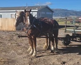 | HIP# 52 Chestnut Quarter Horse Mare ![]() "Syrah" 7 yr. old Chestnut Quarter Horse Mare that stands 14.1 hh. Just returned from summer camp, she’s proven herself to be a reliable and well-rounded mount—comfortable in both the arena and ou ... | HIP# 101 & 102 Team of Sorrel Belgian Geldings ![]() "Bruce & Bryce" 10 yr. old Sorrel Belgian Geldings. They are 7/8 brothers & very well trained to all farm machinery. This is a beginner team! They are 100 % safe and sound. Bruce and Bryce will meet ... | HIP# 103 Black Percheron Gelding ![]() ![]() "Stripes" 7 yr. old Black Percheron Gelding. Stripes is broke to drive single and double. He is the left-hand horse in the team pictures. Consigned by: Thayne Stembridge (435) 640-4397 ... |