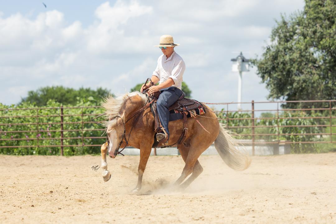 HELLZ NOT RUF "Archie" 2018 Palomino AQHA Gelding. He stands 14.3 hands. With his beautiful palomino color and his white mane and tail, Archie will definitely stand out! Archie is a finished Reiner wi ...