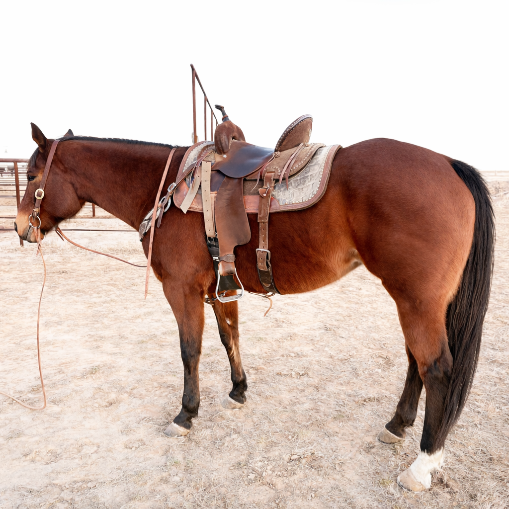 "Roy" - 2014 Bay Quarter Horse Gelding. Roy is 15 hands and checks absolutely every box there is when you're looking for a horse to add to your herd. Broke, trained, solid, won’t buck you off on a c ...