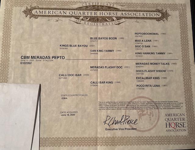 PEPTO KING ROYAL "Royal" 2021 Sorrel AQHA Gelding that stands 15 hands. We’ve been roping steers with him on the head and heel side, been tagging and branding calves in the corrals and outside in th ...