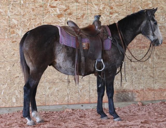 "Pat" - 2021 Gray Quarter Horse Gelding. He has done everything from working the sale barn to riding the trails. Pat has worked behind a lot of cows. He is a good all-around ranch horse that can go al ...