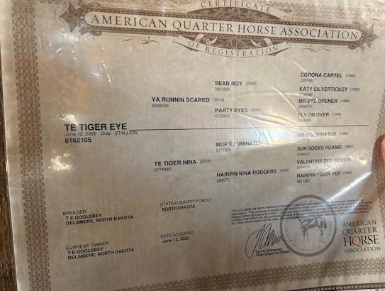 TE TIGER EYE "Tiger" 2022 Gray AQHA Gelding. Tiger is extremely good minded and gentle. He rides good with a good handle and is solid down the trails and around the ranch. Kids can ride him and rope h ...