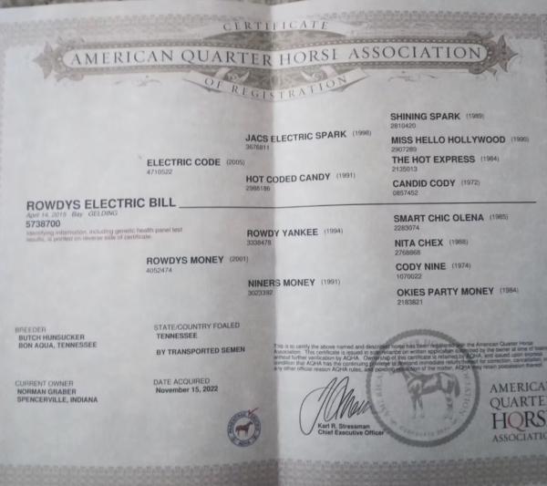 ROWDYS ELECTRIC BILL "Tommy" - 2015 Bay AQHA Gelding. Tommy is the kind of horse that turns heads and makes riding fun. This finished reiner is extra fancy and easy to ride, with effortless flying lea ...