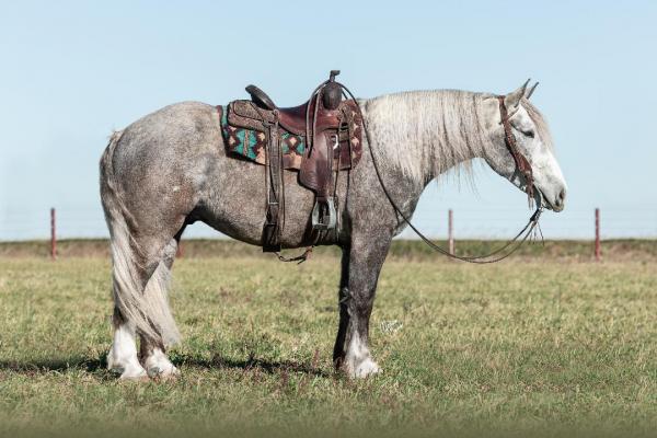 "Shep" 2021 Grey Percheron X Q.H. Gelding. He stands around 15.3 hands. Shep is a very laid-back type of horse. He is so easy going and will do anything you ask. Shep is traffic safe and would fit jus ...