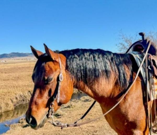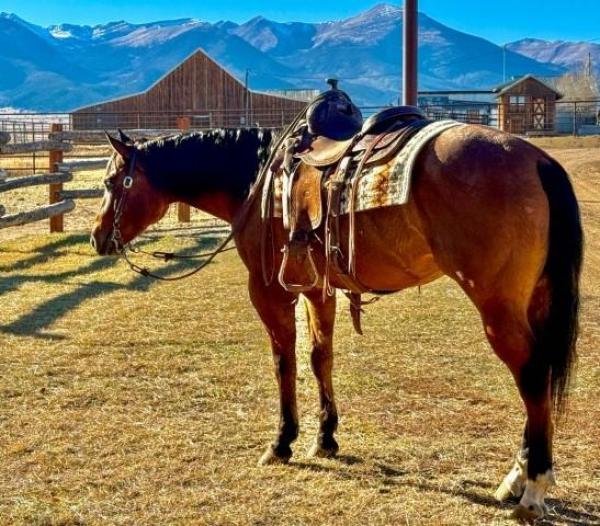 "Pecos" 2015 Bay Roan Quarter Horse Gelding. He stands 15.1 hands and is shapey and safe for the whole family to ride. He rides very well in and out of the arena and on the mountain trails. Pecos will ...