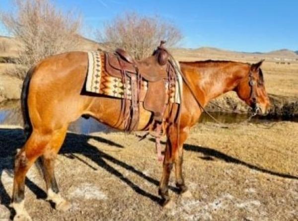 "Bo" 2016 Dun Quarter Horse Gelding. Take a look at Bo! This handsome Red Dun Gelding stands a full 16 hands and is as solid and dependable as they come. Bo has been used to gather pairs out of big co ...