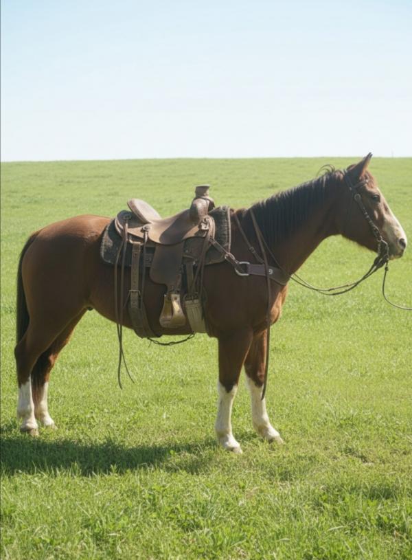 "Ace" 2022 Dun Draft Cross Gelding that stands 15.1 hands. He was raised from one of our mares at the ranch. He has done all ranch chores, been on trails, and packed in the mountains on hunting trips. ...