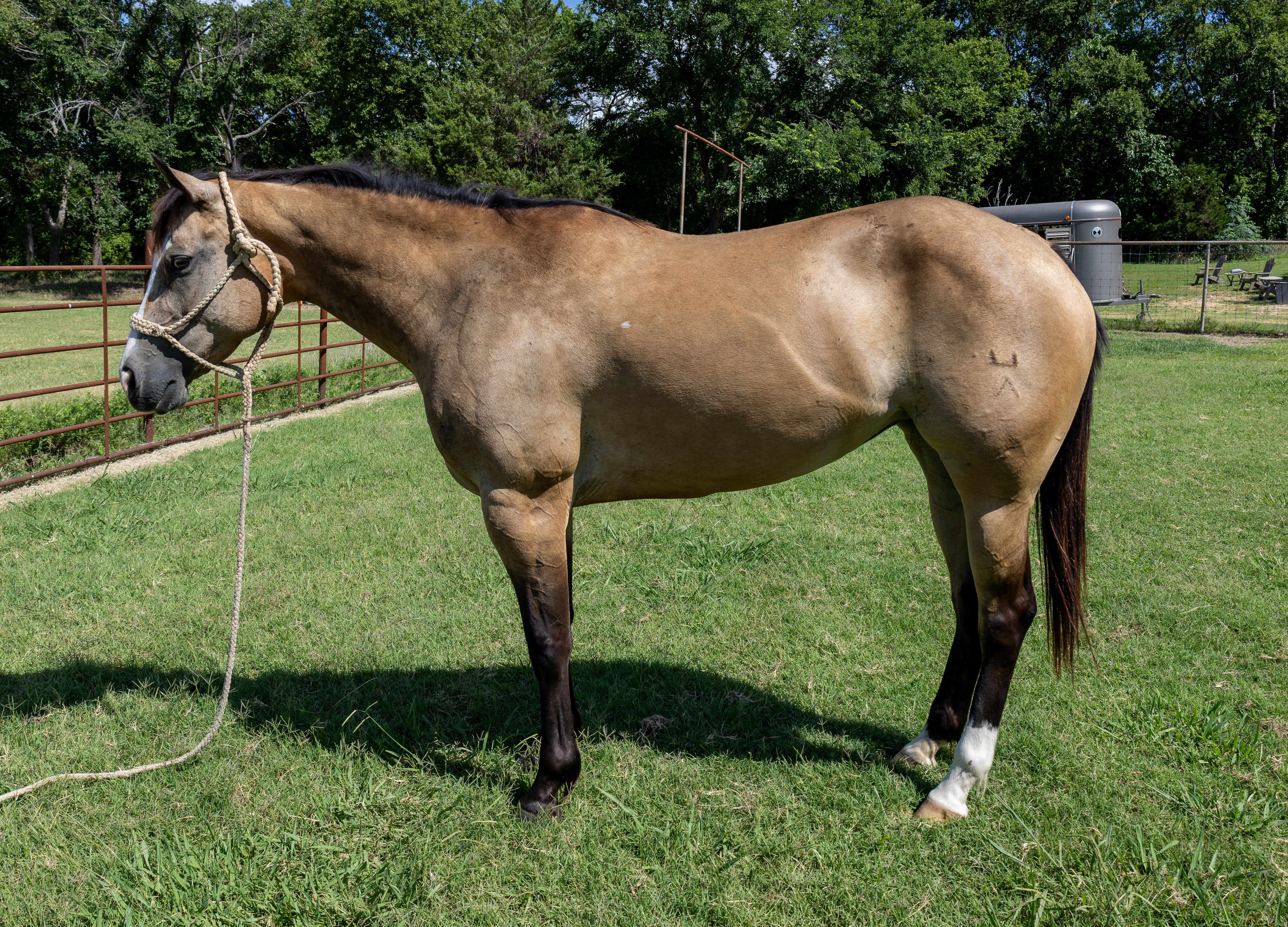 KID TWO SOCKS "Rawhide" - 2021 DUN AQHA Gelding. He is a good looking well broke gelding. From the trails to the arena a ... | HIP #32 2021 Black Q.H. Mare