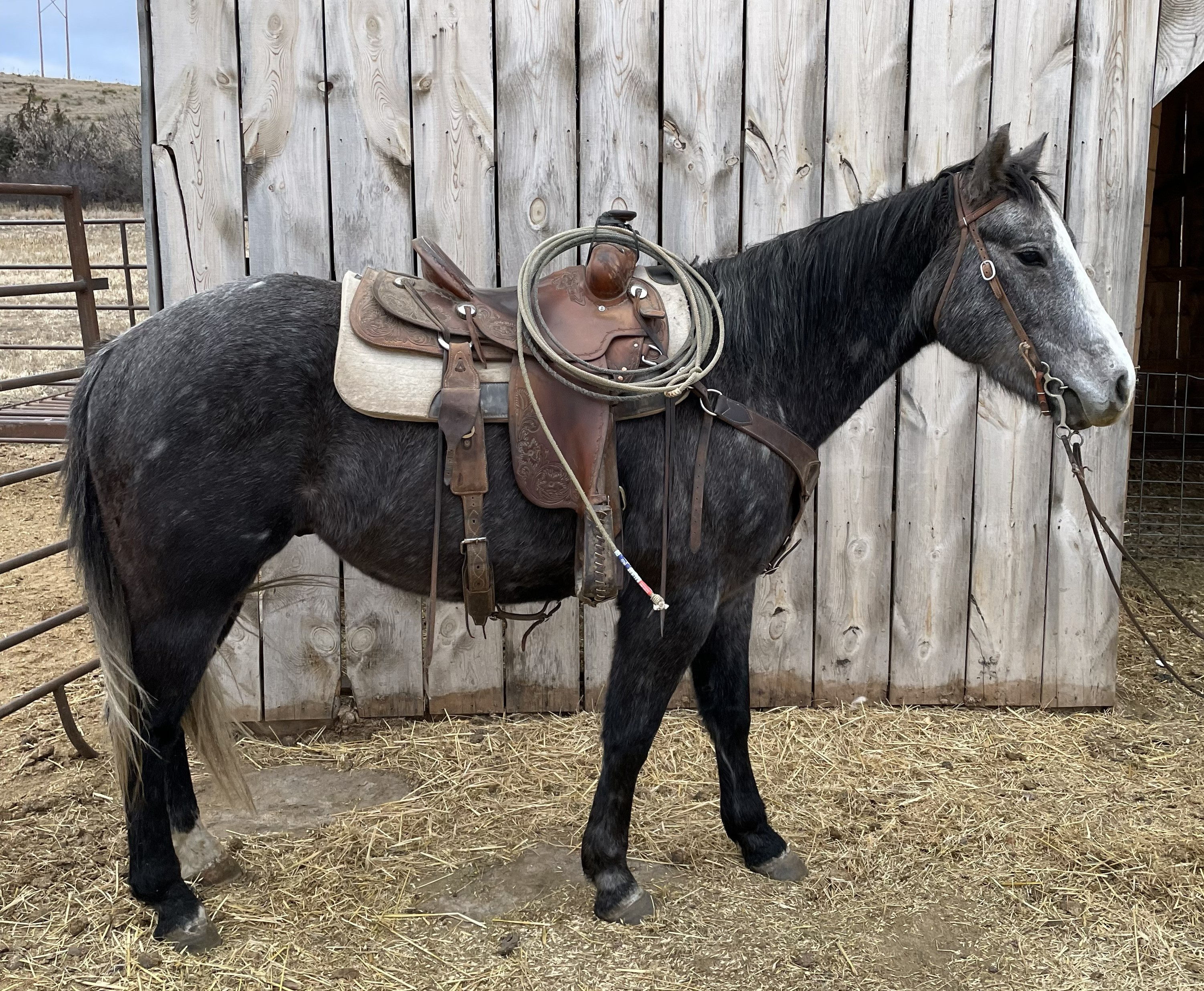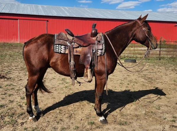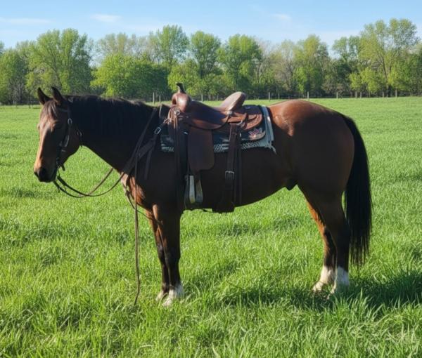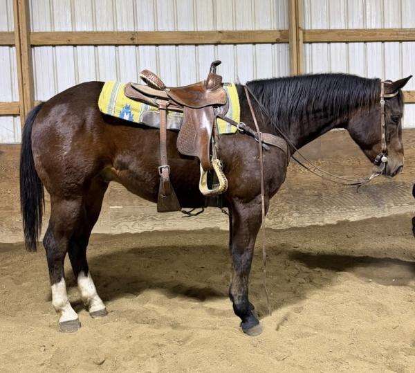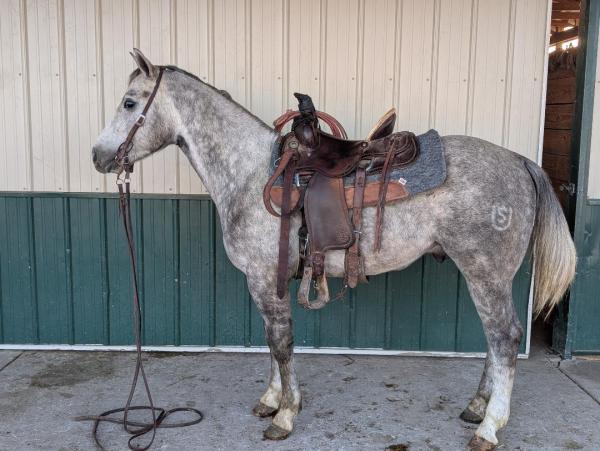 "Pat" - 2021 Gray Quarter Horse Gelding. He has done everything from working the sale barn to riding the trails. Pat has ... | HIP #4 2011 Brown AQHA Mare