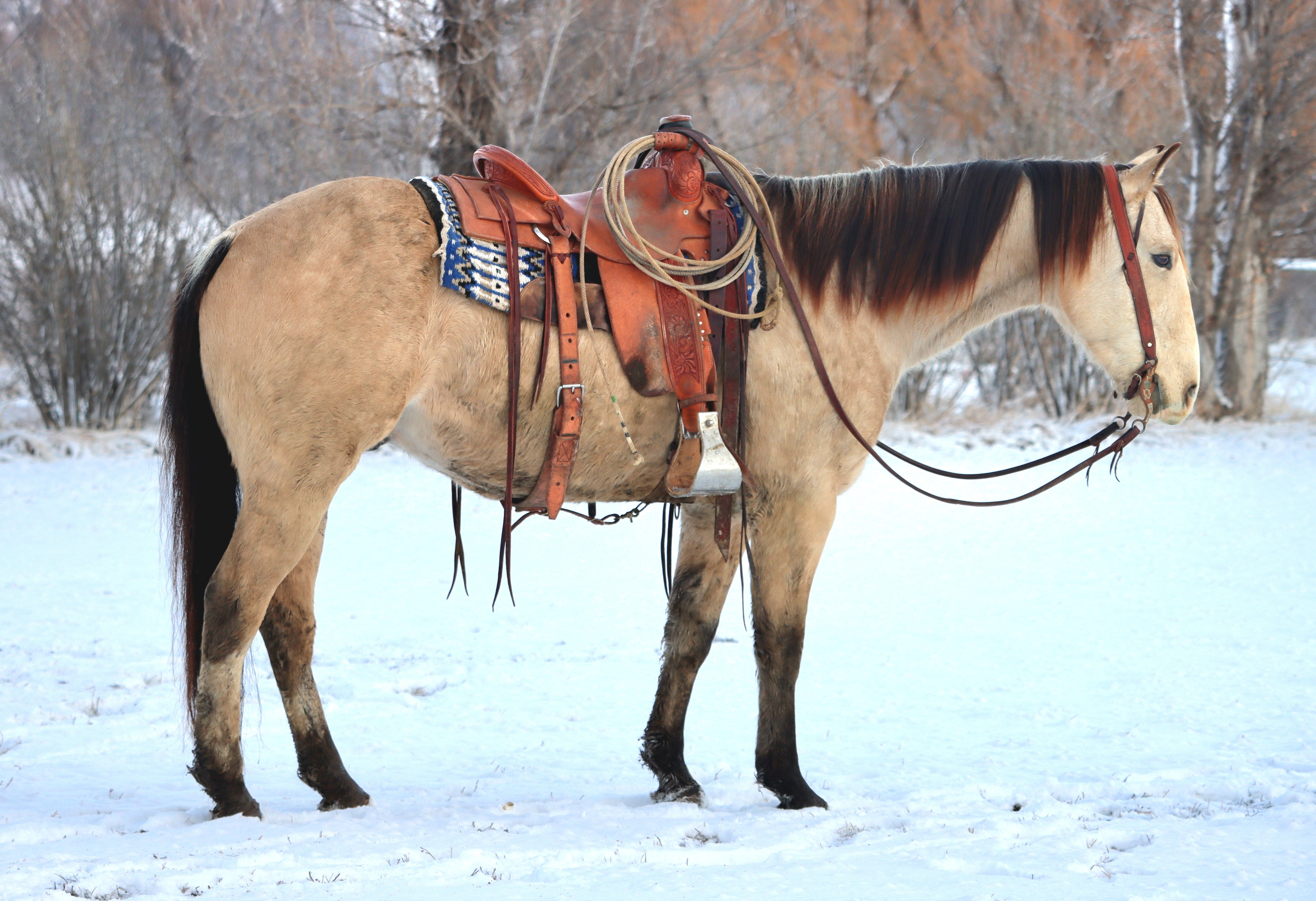 "Misty" - 2020 Gray Friesian Cross Mare. She stands 15.3 hands tall. Misty has a lot of the Friesian characteristics in ... | HIP #13 2015 Buckskin AQHA Gelding