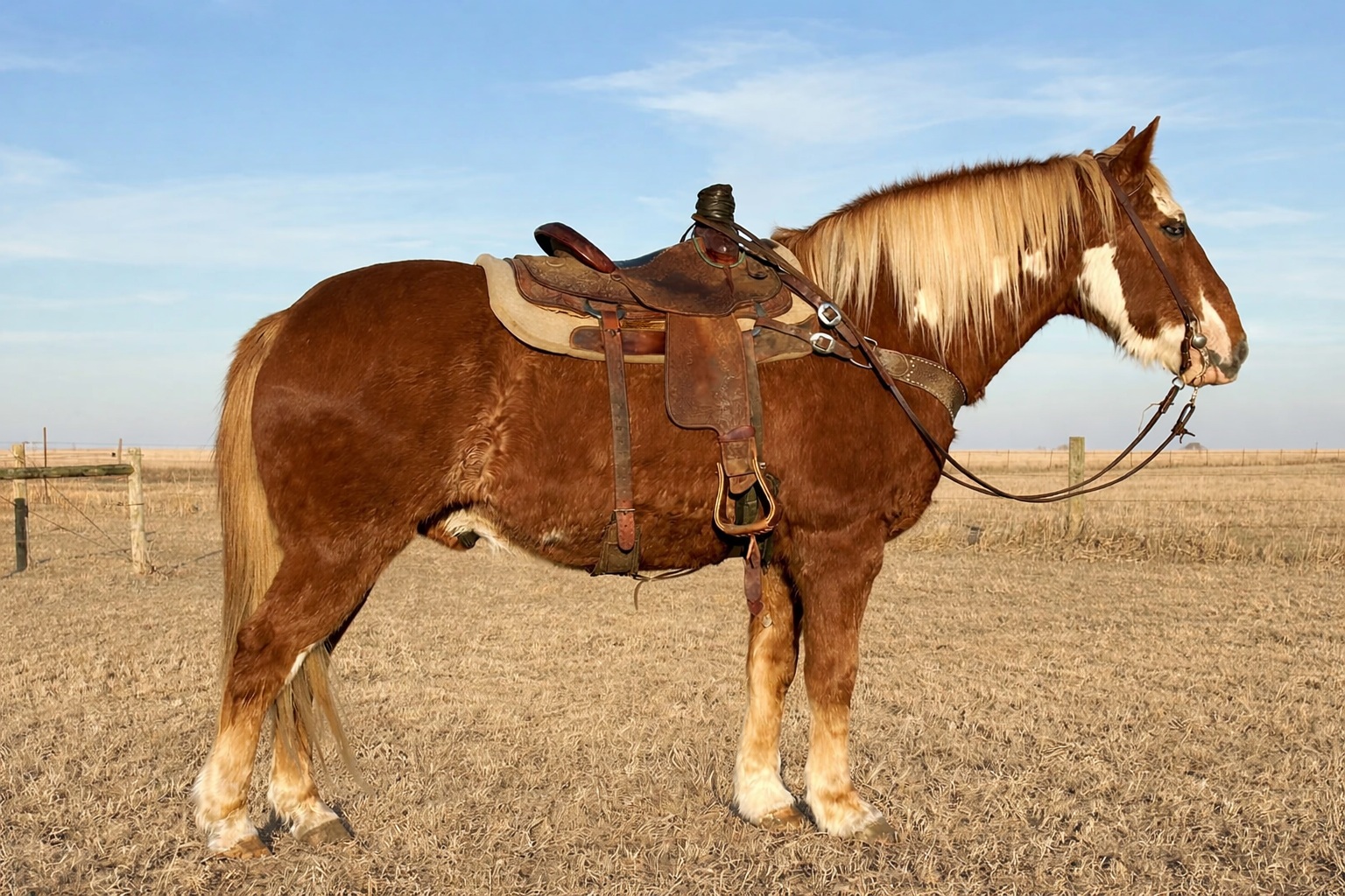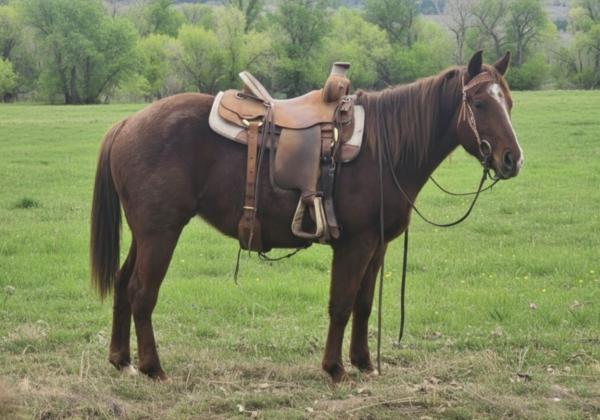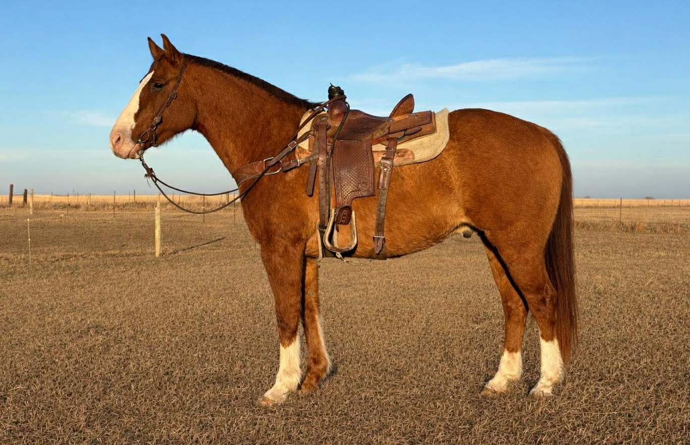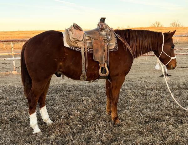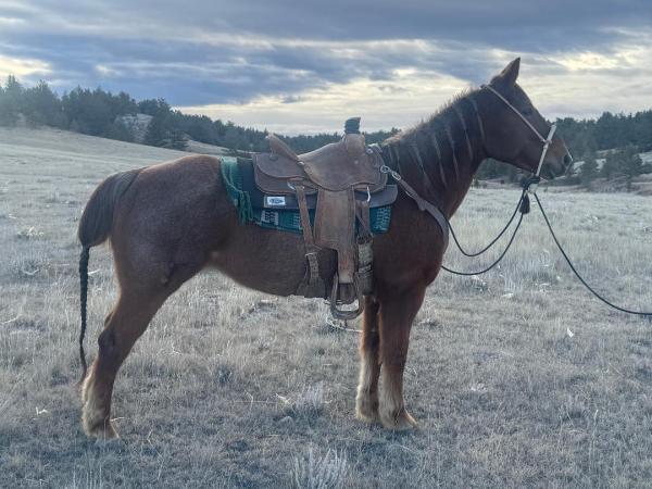 "Ace" 2022 Dun Draft Cross Gelding that stands 15.1 hands. He was raised from one of our mares at the ranch. He has done ... | HIP #58 2023 Sorrel AQHA Gelding