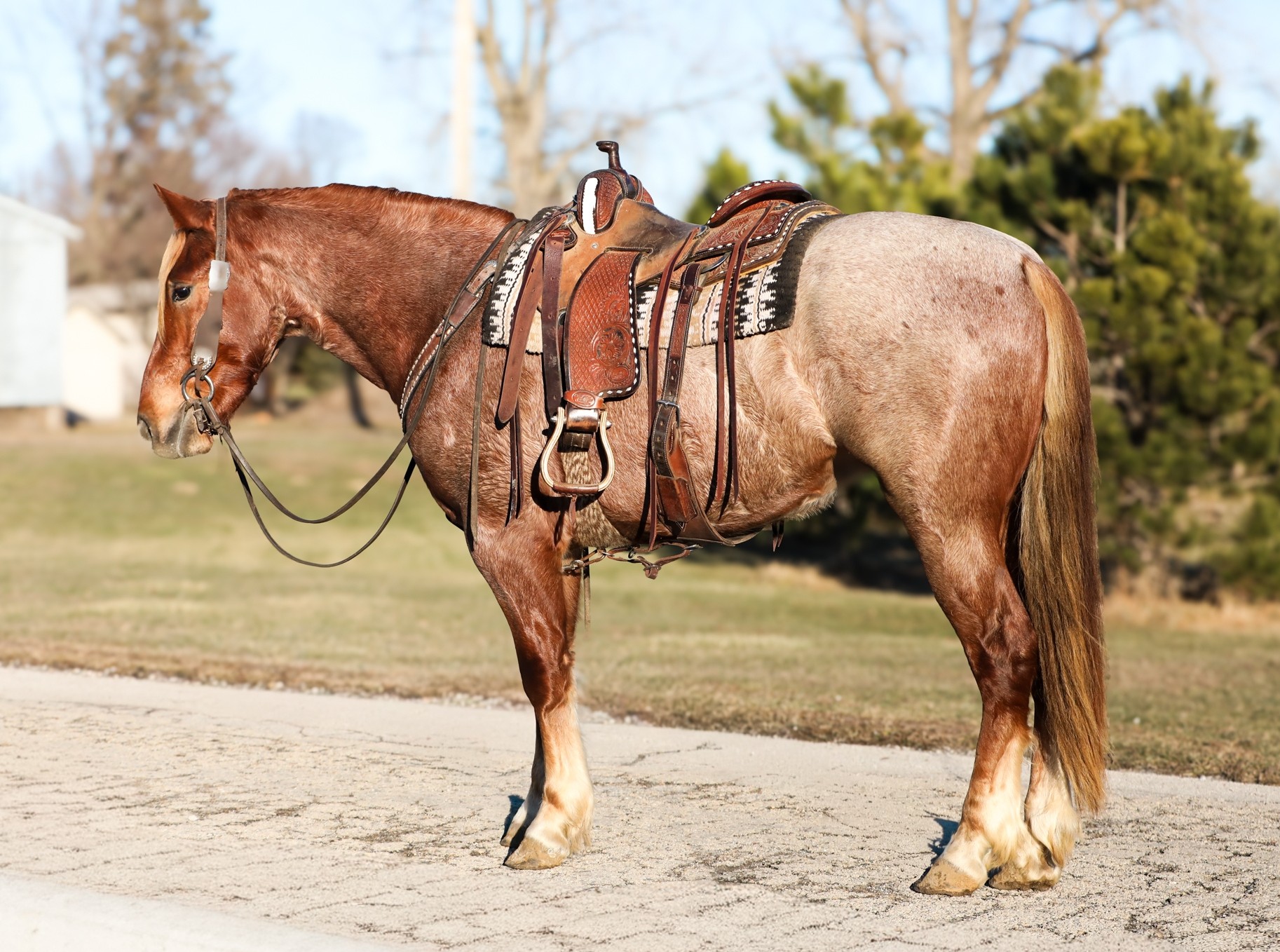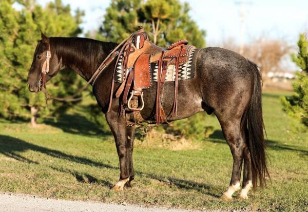MISS DIXON HEATHEN - 2008 Red Roan APHA Mare. I’ve owned her since 2012. Sound with a size 1 shoe or leave her barefoo ... | HIP #40 2022 Black Q.H. Gelding