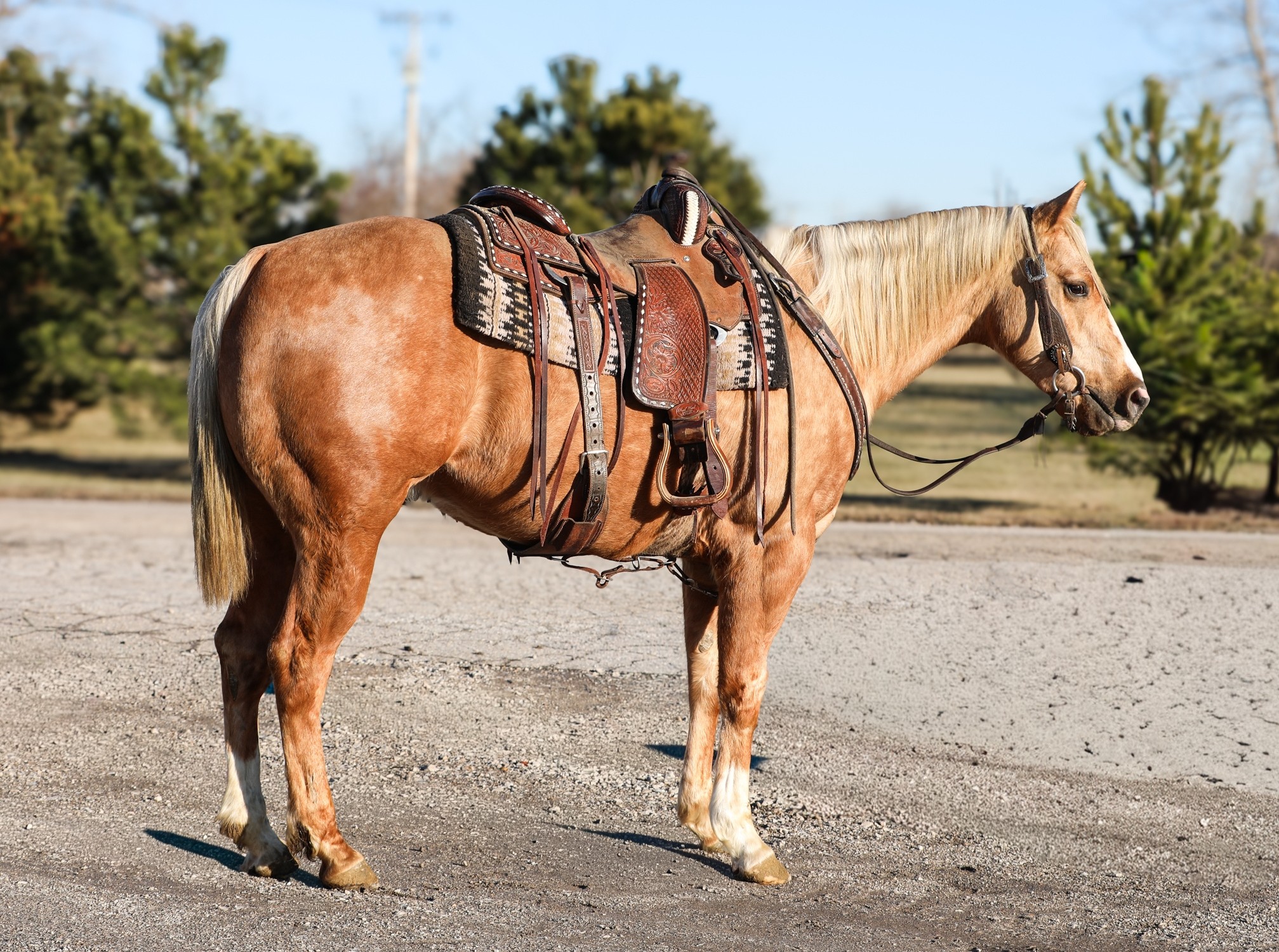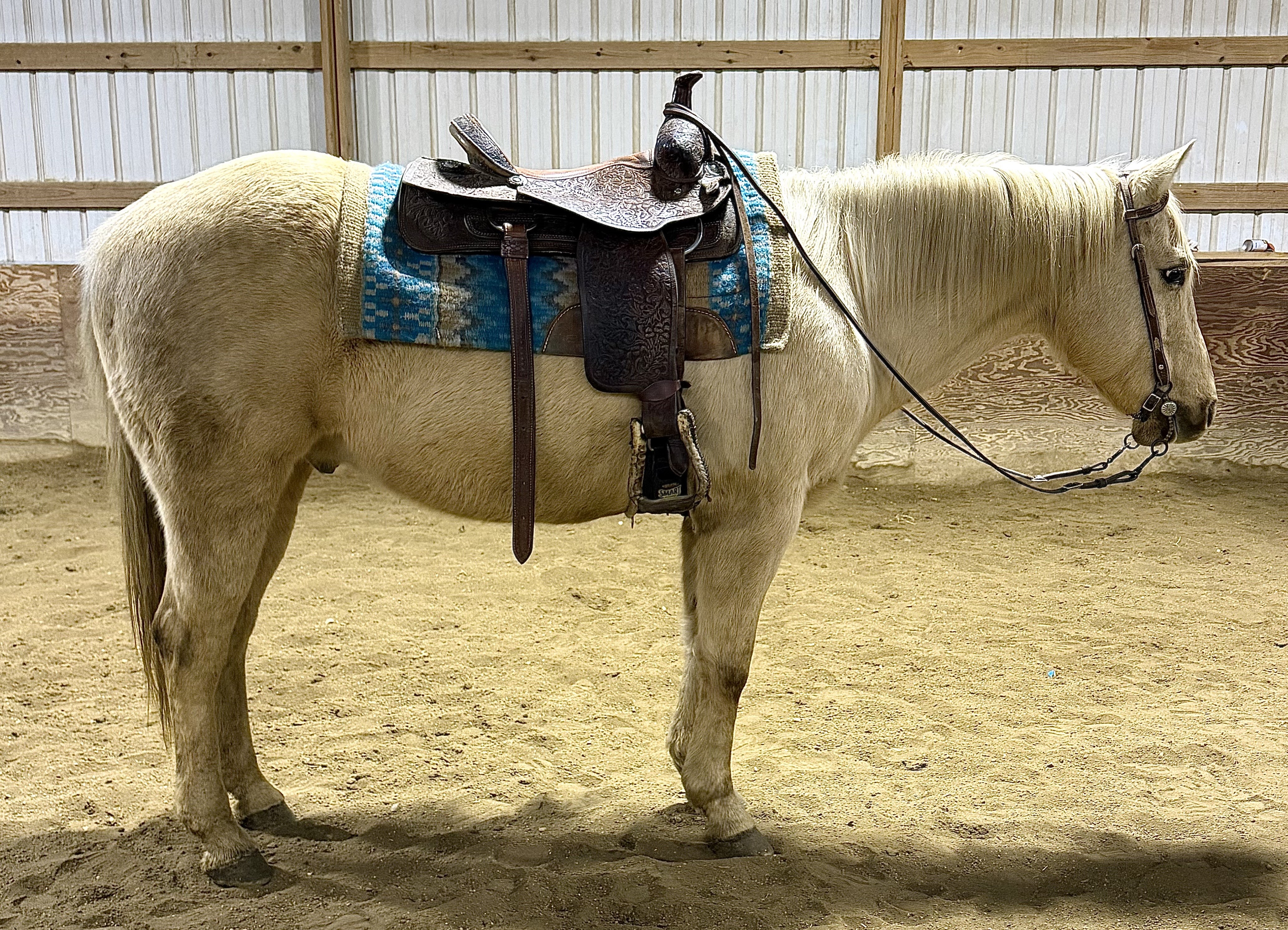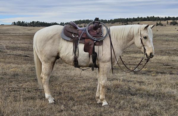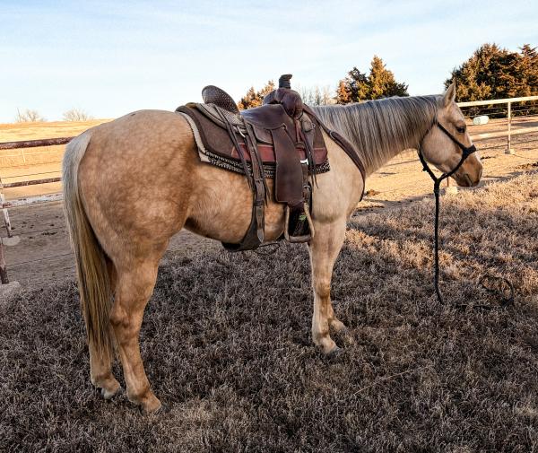 PRETTY DASHING BOY "Boone" - 2022 Gray AQHA Gelding. Boone is well broke to ride, goes one-handed, and knows all of his ... | HIP #34 2012 Palomino AQHA Mare