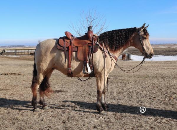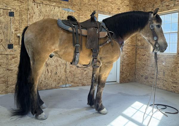 "Charmer" - 2022 Gray Percheron Cross Gelding standing around 15.1 hands tall. Charmer is well broke to ride and is very ... | HIP #57 2022 Dun Draft Cross Gelding