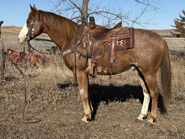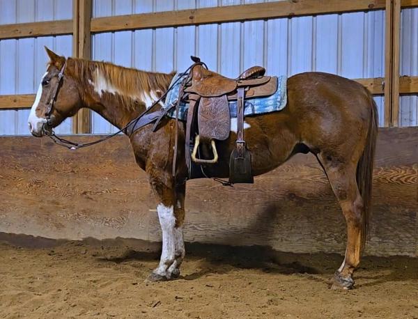 "Badger" - 2019 Sorrel Quarter Horse Gelding that stands 14 hands. He is gentle and goes where you point him, crosses wa ... | HIP #76 2015 Sorrel & White Paint Gelding