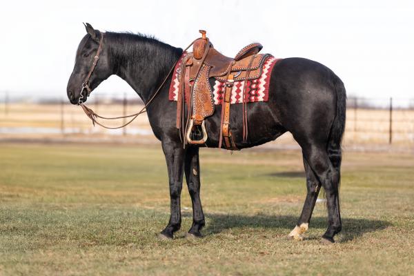 "Princess" - 2021 Black Quarter Horse Mare. She is well broke to ride, goes one-handed, and knows all her leg cues. Prin ... | HIP #33 2022 Gray AQHA Gelding