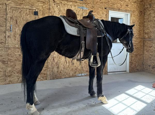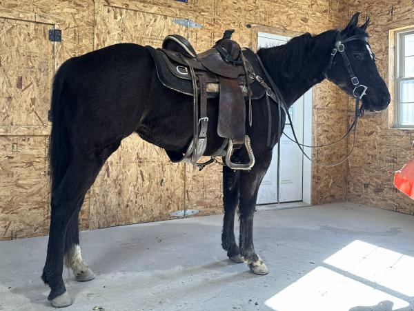 "Zally" - 2023 Black Quarter Horse Gelding. He stands 14. hands and is well started with 60 days of riding. Zally stands ... | HIP #51 2021 Gray Percheron X Q.H. Gelding