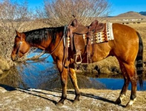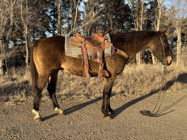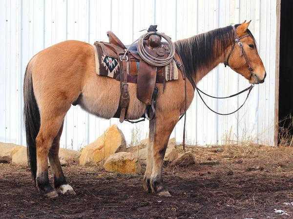 "JJ" 2013 Buckskin Quarter Horse Gelding standing 15 hands tall. He is a veteran ranch horse. Rides with a true one hand ... | HIP #68 2014 Bay AQHA Mare