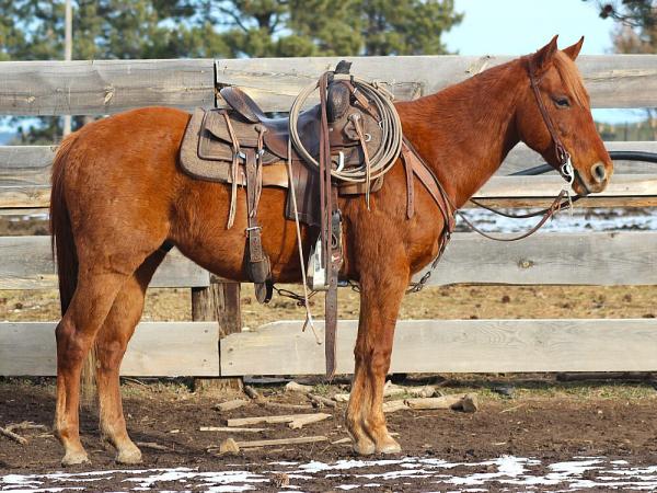 "Clifford" 2018 Sorrel Quarter Horse Gelding. He is ranch broke and we have gathered and sorted cows on him. He has been ... | HIP #71 2014 Bay Q.H. Gelding
