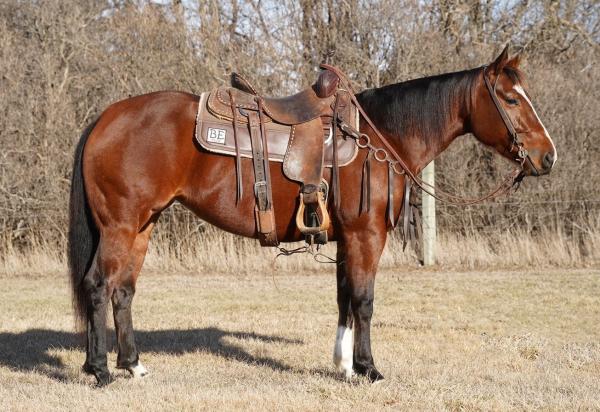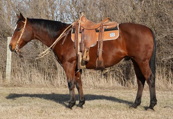 FRECKLES SUPERSTAR "Freckles" - 2021 Bay AQHA Gelding and broke for anyone to ride. He will walk, trot, and lope nice ci ... | HIP #84 2020 Bay AQHA Gelding