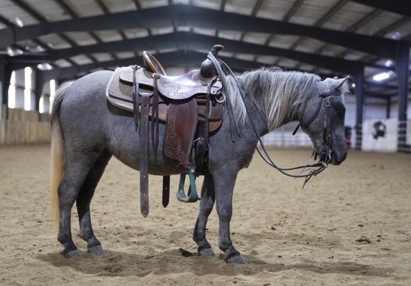 "Comet" 2022 Blue Roan Quarter Horse Gelding. He stands 15.2 hands and rides around very well! He lopes nice circles, ta ... |